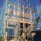 先週の金曜日から土台敷きを行い、床断熱工事、床合板工事と続き、昨日、今年初の上棟を行いました。